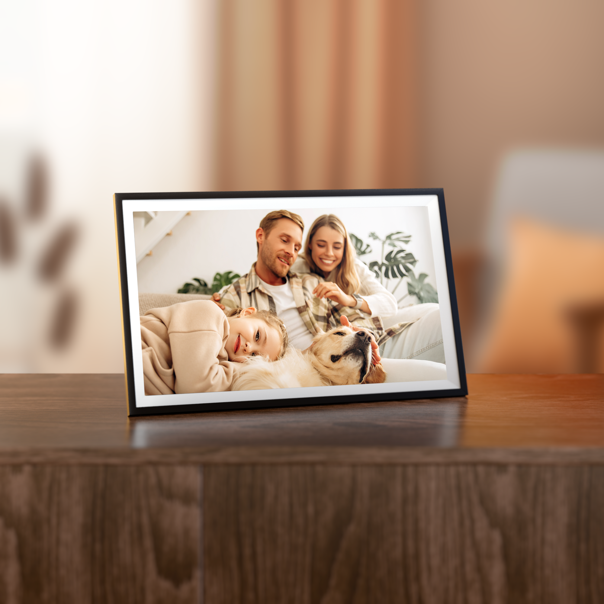 Ga voor compact en subtiel met 10.1 inch, of kies 15.6 inch voor een groter statement. Beide formaten tonen jouw herinneringen haarscherp en passen naadloos in elk interieur. Welke maat je ook kiest: Framory brengt je momenten tot leven.
